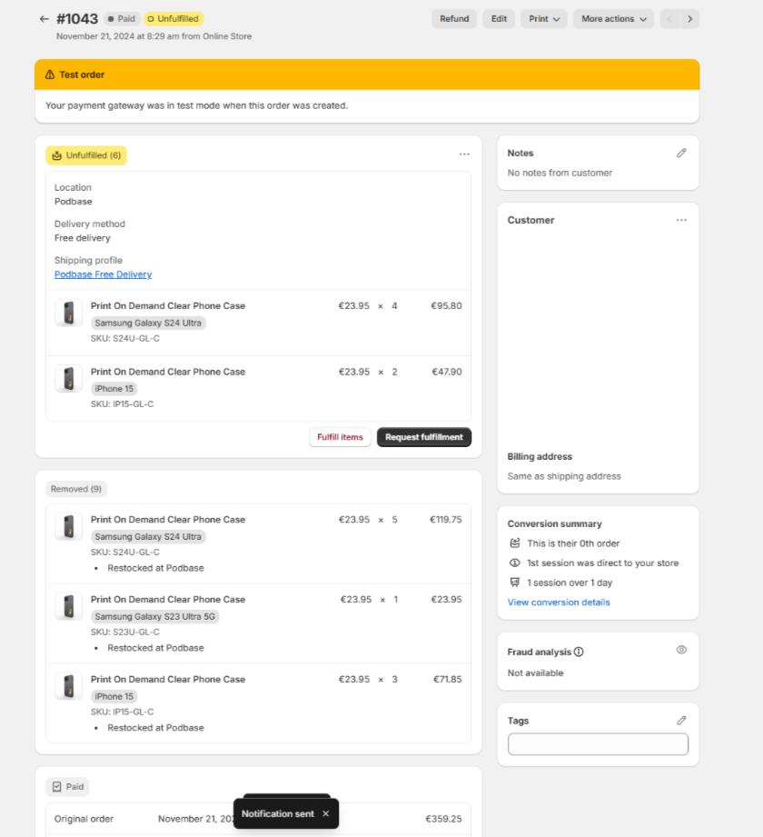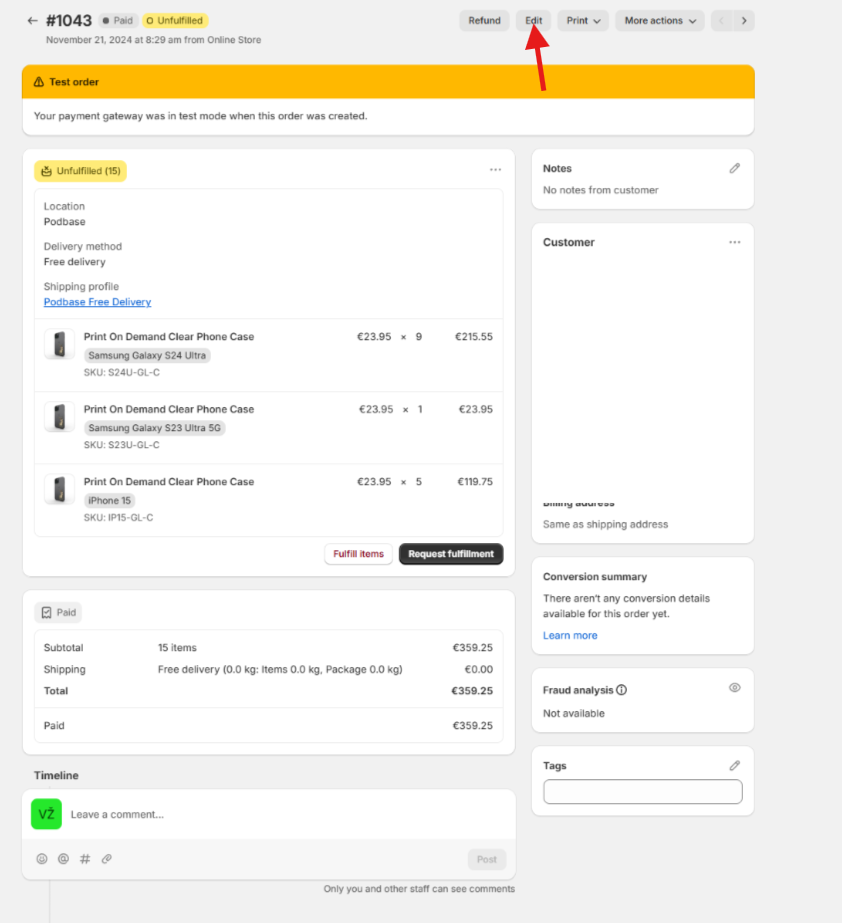 5. After all the changes you can push the order to be fulfilled!