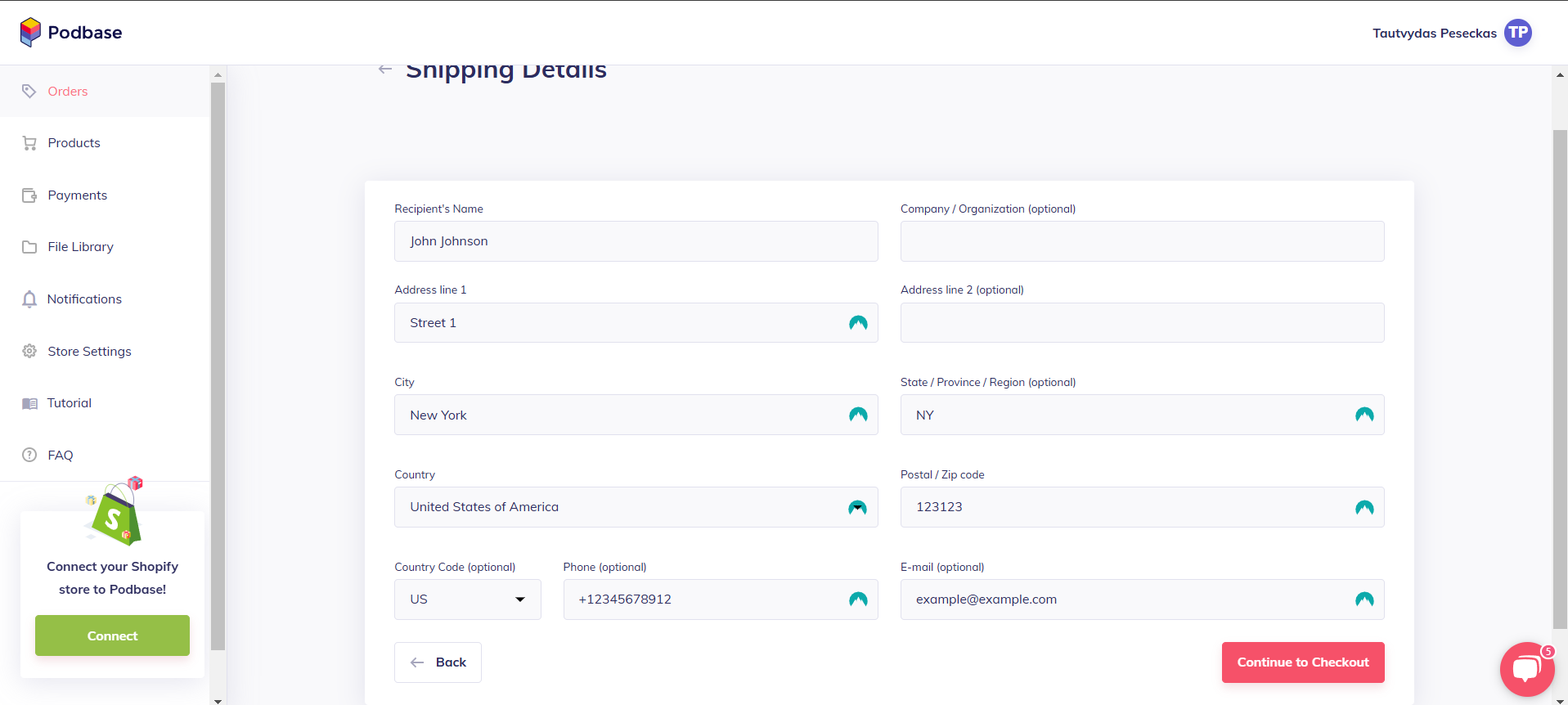 - Click "Continue" and enter your delivery address. After entering the details click "Continue to Checkout"