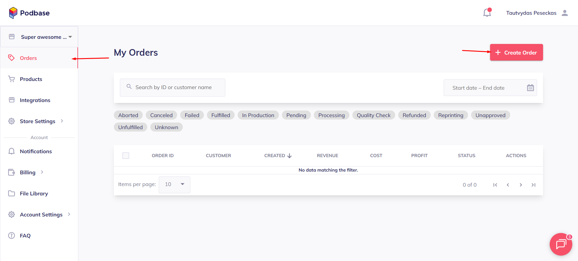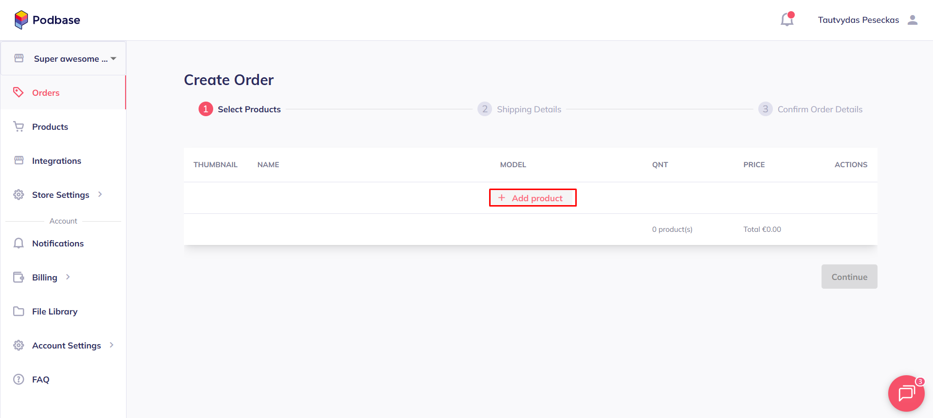 - Click on“+ Create order ” in the top right corner.