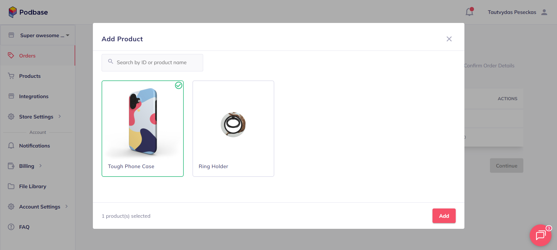 - Choose your product and click "Add"