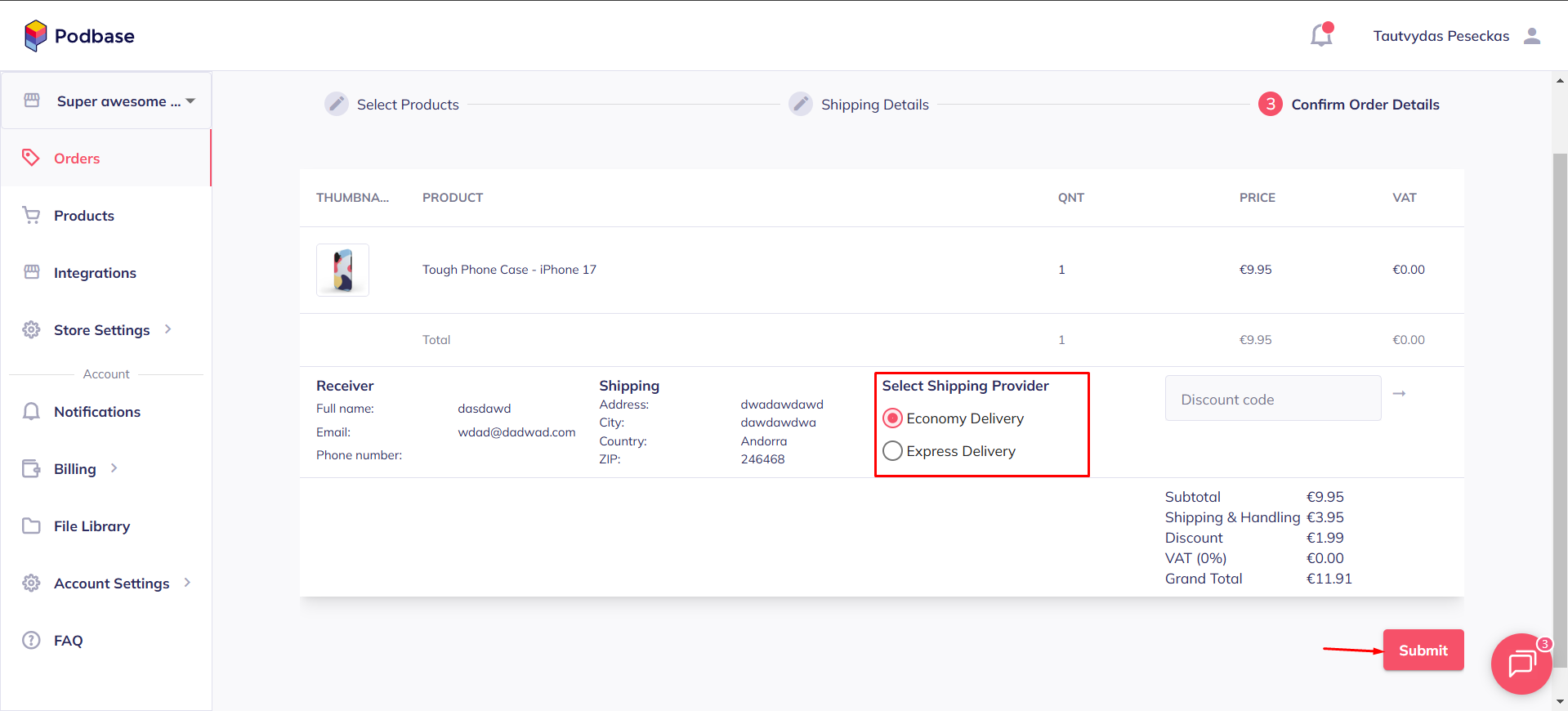 - Pick a shipping method and click "Submit". Just make sure your wallet is topped up with enough credit; otherwise, your order won’t go through.
